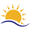 Sun rising over blue waves.